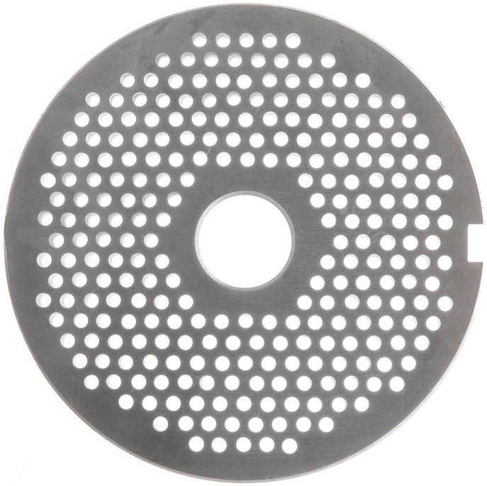 Решетка БЕЛТОРГМАШ используется совместно с мясорубками МИМ-600 для приготовления паштета. Модель с отверстиями в 3 мм без бурта.