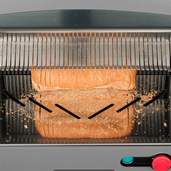 - Встроенная запатентованная система Intelligent Slicing Concept (концепция интеллектуальной нарезки) позволяет отрегулировать скорость нарезки в соответствии с видом хлебобулочного изделия и одинаково хорошо нарезать воздушный, хрустящий или плотный хлеб