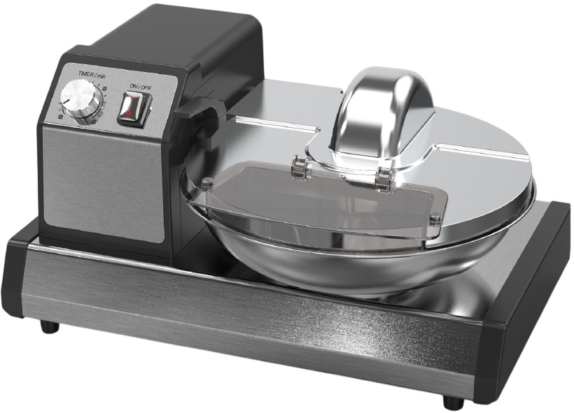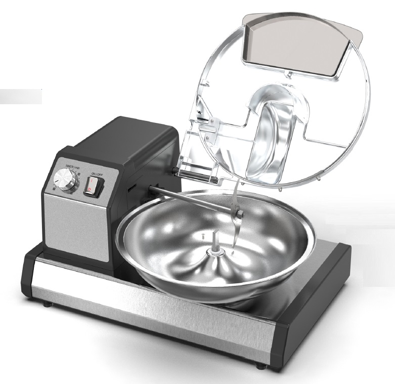 Куттер Kocateq TQ5S используется на предприятиях общественного питания, торговли и пищевых производствах для измельчения и смешивания мяса, фруктов, овощей и прочих продуктов, а также приготовления паштетов, кремов и соусов. Модель оснащена таймером, датчиком двойной защиты для чаши и открытой крышки. При открывании кожуха нож и привод чаши блокируются. Материал чаши - нержавеющая сталь AISI 304, материал 2х лопастного серповидного ножа - нержавеющая сталь AISI 420, материал крышки - полупрозрачный поликарбонат, материал корпуса - анодированный алюминий.