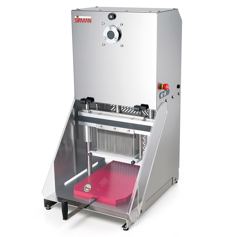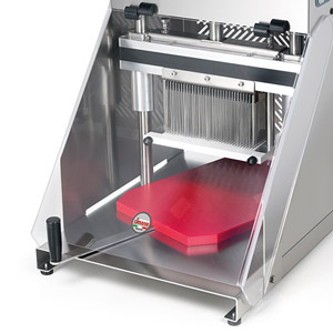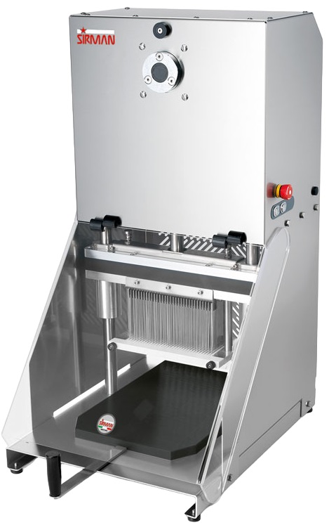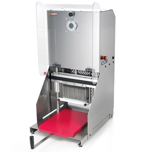 Изготовлен полностью из нержавеющей стали. Лёгкий доступ к блоку ножей с возможностью поштучной замены. Съёмная разделочная доска, съёмное ограждение с блокировкой. Моторизированный привод. Стол перемещается с помощью внешнего рычага.