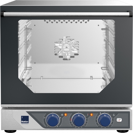 Печь конвекционная Radax GOGOL GG43M0HXGS с пароувлажнением предназначена для выпечки хлебобулочных и кондитерских изделий и приготовления различных блюд на предприятиях пищевой промышленности, общественного питания и торговли. Модель оснащена подсветкой камеры, механическим управлением и дверцей со стандартным открыванием на себя.