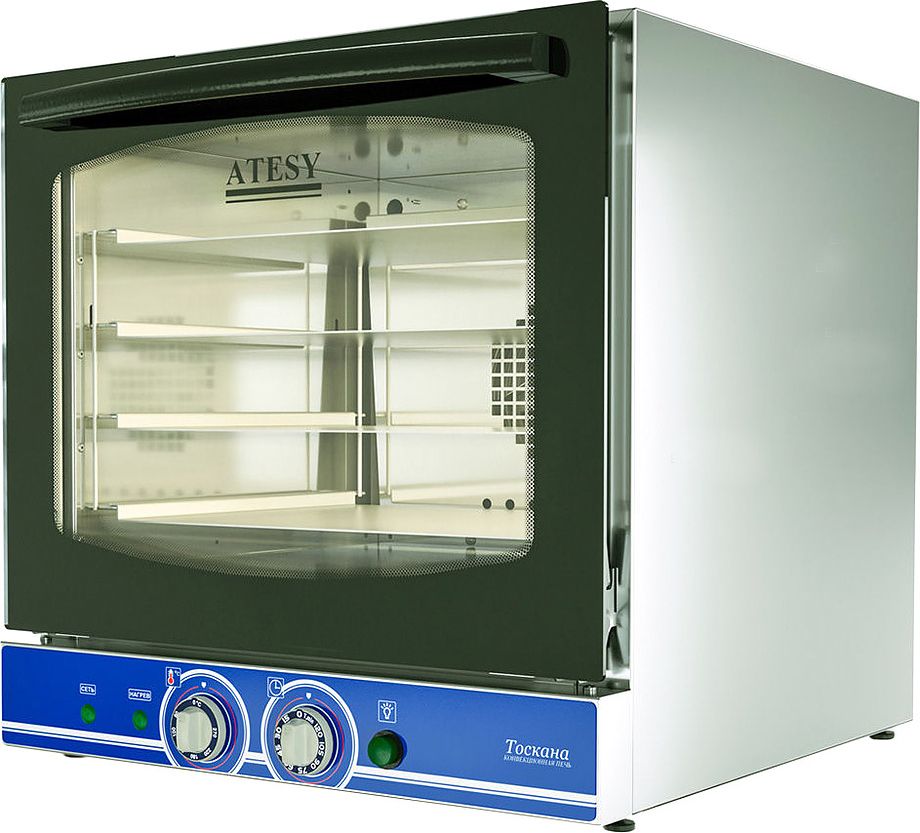 Конвекционная печь ATESY КП-4-600/400-01-У серии Тоскана используется на предприятиях общественного питания и торговли для выпечки хлебобулочных и кондитерских изделий, приготовления и разогрева различных блюд. Приготовление и выпекание происходит за счет равномерной циркуляции горячего воздуха внутри камеры. Материал корпуса и камеры - нержавеющая сталь, материал дверцы - термостойкое стекло.