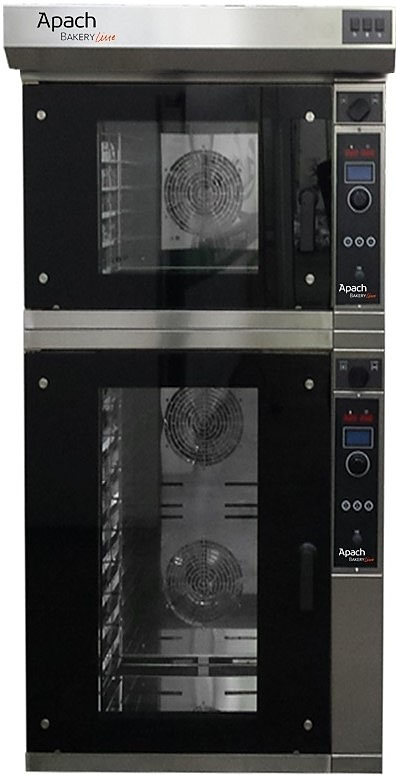 Конвекционная печь Apach Bakery Line K5T+ K10T MDP предназначена для выпекания или разогрева кондитерских и хлебобулочных изделий, готовых блюд, замороженных или предварительно выдержанных в расстоечном шкафу заготовок из теста на предприятиях общественного питания, торговли и пищевых производствах. Модель оборудована цифровой панелью управления. Материал корпуса, внутренней, наружной отделки и козырька с вытяжкой - нержавеющая сталь, двери - нержавеющая сталь с двойным остеклением.