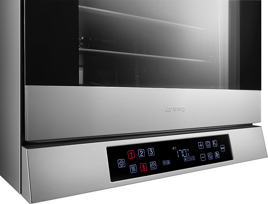 Конвекционная печь Smeg ALFA 43 XE1HDS используется на предприятиях общественного питания, торговли и пищевых производствах для выпекания хлебобулочных и кондитерских изделий. Взможность совмещения с расстоечными шкафами модели LEV 43 RU и LEV 43 XV-3. Модель оснащена электронным управлением, 2 режимами приготовления, внутренней вентиляцией, стеклянной дверцей, удобной ручкой пи регулируемыми ножками. Материал корпуса - высококачественная нержавеющая сталь, материал дверцы - тройное термостойкое стекло.