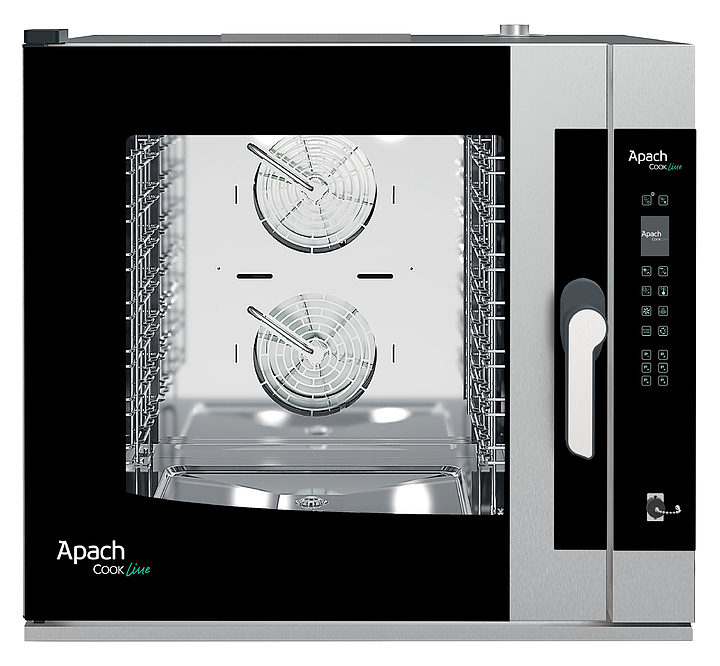 Конвекционная печь Apach AB6QNDC используется на предприятиях общественного питания, торговли и пищевых производствах для выпечки или разогрева кондитерских и хлебобулочных изделий, а также готовых блюд, замороженных или предварительно выдержанных в расстоечном шкафу заготовок из теста. Модель оснащена Touch Screen управлением, дисплеем 2,4”, 5 скоростями, 2 вентиляторами и автомойкой. Материал корпуса - высококачественная нержавеющая сталь, материал двери - двойное закаленное стекло.