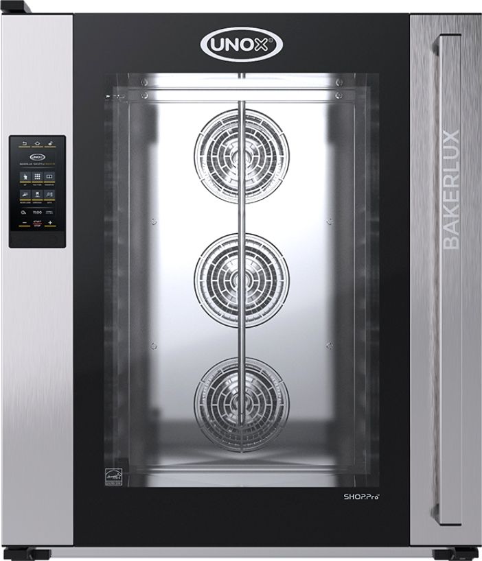 Печь конвекционная UNOX XEFT-10EU-EMLV серии BakerLux Shop.Pro предназначена для приготовления различных блюд, выпечки хлебобулочных и кондитерских изделий на предприятиях общественного питания и торговли, в пекарнях и кондитерских. Модель оснащена электронным управлением, светодиодной подсветкой и L-образными направляющими. Легко открывающееся внутреннее стекло облегчают чистку и обеспечивает максимальную гигиену. Камера выполнена из нержавеющей стали, направляющие - из гнутого стального листа.