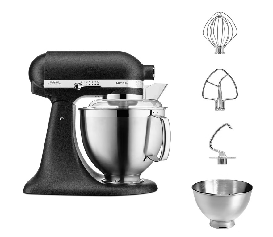 Миксер планетарный KitchenAid ARTISAN 5KSM185PSEBK используется для смешивания, взбивания и замешивания продуктов на предприятиях общественного питания, торговли и пищевых производствах. Модель оснащена механическим управлением. Материал дежи и насадок - высококачественная нержавеющая сталь, материал цельнометаллического корпуса - металл с матовым покрытием, материал основания - литой металл.