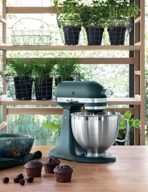 В комплекте венчик, лопатка, крюк, чаша 4.83 л с матовым покрытием, чаша без ручки 3 л и защитный обод.