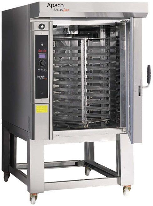 Печь ротационная Apach Bakery Line C57CL DPTA серии C используется на предприятиях общественного питания, торговли и пищевых производствах для выпечки хлебобулочных и кондитерских изделий. Модель оснащена электромеханическим управлением, вращением при помощи крюка, стандартным и пониженным обдувом, высокопроизводительным парогенератором, козырьком с вытяжкой пара, защитными уплотнителями и подставкой с колесиками. Материал внешнего и внутреннего корпуса - высококачественная нержавеющая сталь, материал теплоизоляции - минеральная вата.