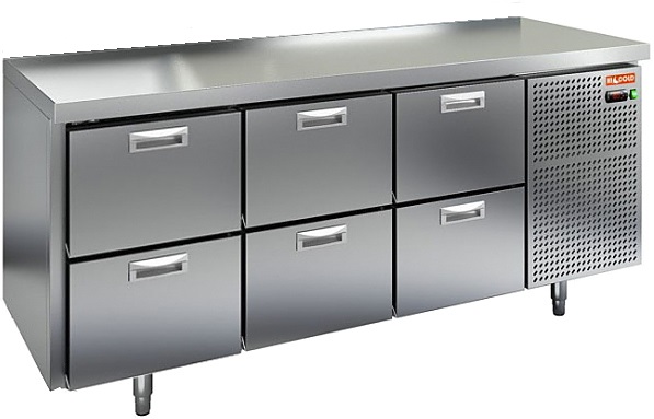 Холодильный стол HICOLD GN 222/TN LT O используется на предприятиях общественного питания, торговли и пищевых производствах для обработки различных ингредиентов и хранения продуктов, напитков и кухонных принадлежностей. Модель оснащена электронной панелью управления, динамической системой охлаждения, автоматической оттайкой, ящиками и регулируемыми ножками. Материал корпуса и столешницы - высококачественная нержавеющая сталь, материал задней стенки - оцинкованная сталь.
