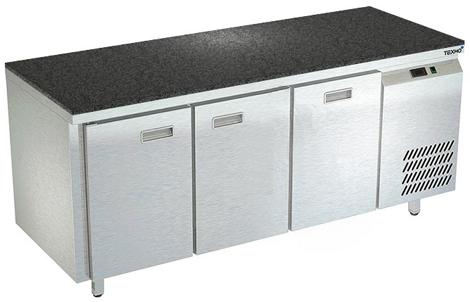 Холодильный стол Техно-ТТ СПБ/О-322/21-1806 предназначается для раскатки теста, обработки, охлаждения и кратковременного хранения продуктов и напитков на предприятиях общественного питания, торговли и пищевых производствах. Секции оснащены направляющими и ящиками с доводчиками. Материал корпуса - нержавеющая сталь AISI 430, материал столешницы - гранит (толщина 20 мм), материал задней панели и дна - оцинкованная сталь.