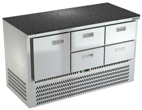 Холодильный стол Техно-ТТ СПН/О-322/14-1407 предназначается для раскатки теста, обработки, охлаждения и кратковременного хранения продуктов и напитков на предприятиях общественного питания, торговли и пищевых производствах. Секции оснащены направляющими и ящиками с доводчиками. Материал корпуса - нержавеющая сталь AISI 430, материал столешницы - гранит (толщина 20 мм), материал задней панели и дна - оцинкованная сталь.