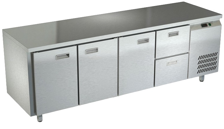 Холодильный стол Техно-ТТ СПБ/Т-122/32-2207 предназначается для раскатки теста, обработки продуктов и ингредиентов, заморозки и хранения продукции, а также для размещения теплового оборудования на предприятиях общественного питания, торговли и пищевых производствах. Двери оснащены доводчиками. Материал корпуса и столешницы - нержавеющая сталь AISI 430, материал дна и задней панели - оцинкованная сталь.