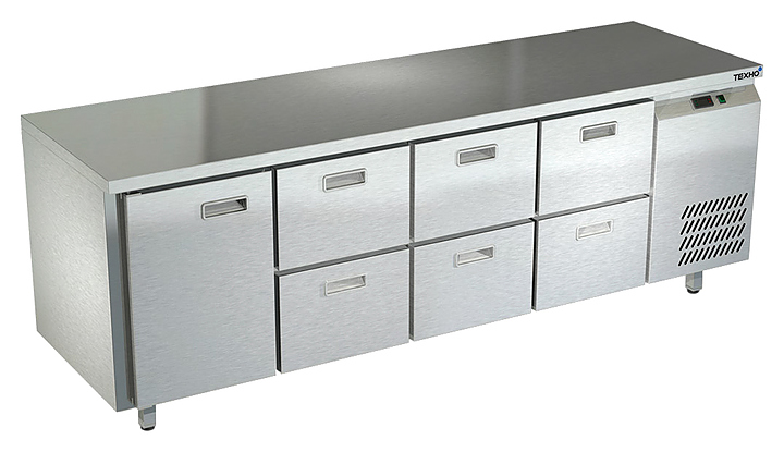 Холодильный стол Техно-ТТ СПБ/Т-122/16-2206 предназначается для раскатки теста, обработки продуктов и ингредиентов, заморозки и хранения продукции, а также для размещения теплового оборудования на предприятиях общественного питания, торговли и пищевых производствах. Двери оснащены доводчиками. Материал корпуса и столешницы - нержавеющая сталь AISI 430, материал дна и задней панели - оцинкованная сталь.
