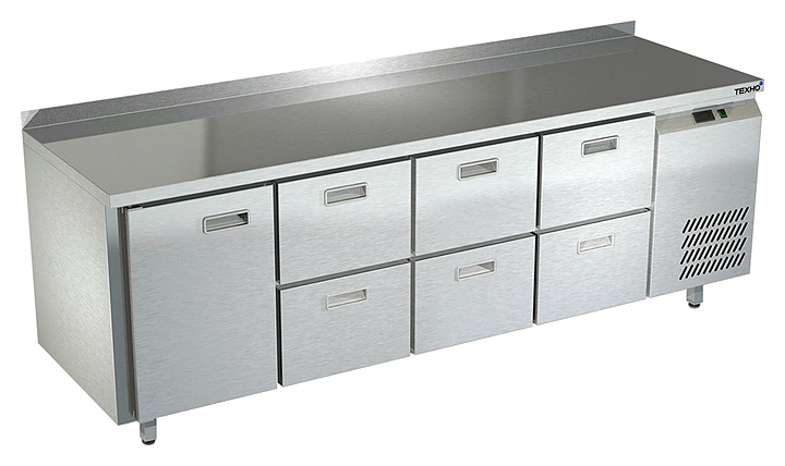 Холодильный стол Техно-ТТ СПБ/Т-222/16-2207 предназначается для раскатки теста, обработки продуктов и ингредиентов, заморозки и хранения продукции, а также для размещения теплового оборудования на предприятиях общественного питания, торговли и пищевых производствах. Двери оснащены доводчиками. Материал корпуса и столешницы - нержавеющая сталь AISI 430, материал дна и задней панели - оцинкованная сталь.