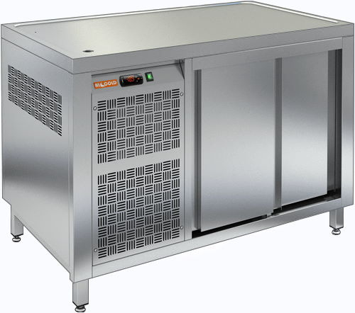 Закрытый стол с охлаждаемой поверхностью HICOLD SO-13/6 SD используется на предприятиях общественного питания, торговли и пищевых производствах для кратковременного хранения, демонстрации и разделки сырого мяса и рыбы, производства карамели и других кондитерских изделий, требующих пониженной температуры изготовления, а также для приготовления и порционирования суши и роллов и других готовых блюд. Стол оснащен холодильным агрегатом сбоку и дверьми-купе. Материал корпуса и столешницы - нержавеющая сталь.