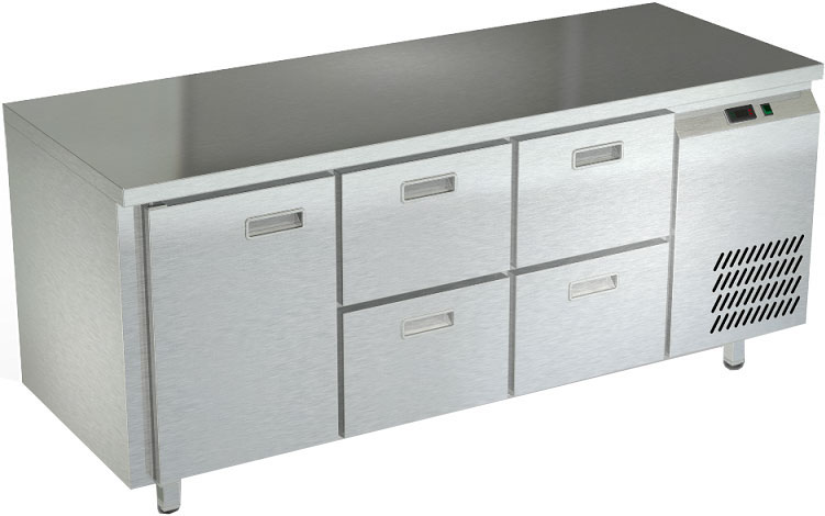 Холодильный стол Техно-ТТ СПБ/О-122/14-1807 предназначен для раскатки теста, обработки, охлаждения и кратковременного хранения продуктов и напитков на предприятиях общественного питания и торговли. Модель оснащена компрессором АСС (Италия), секция - направляющими и сетчатой полкой, дверь и ящики - доводчиками. Корпус выполнен из нержавеющей стали, задняя стенка - из оцинкованной стали.