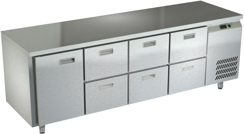 Холодильный стол Техно-ТТ СПБ/О-122/16-2207 предназначен для раскатки теста, обработки, охлаждения и кратковременного хранения продуктов и напитков на предприятиях общественного питания и торговли. Модель оснащена компрессором АСС (Италия), секция - направляющими и сетчатой полкой, дверь и ящики - доводчиками. Корпус выполнен из нержавеющей стали, задняя стенка - из оцинкованной стали.