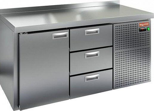 Холодильный стол HICOLD GN 13 BR3 TN состоит из рабочей поверхности, на которой можно раскатывать тесто и обрабатывать ингредиенты для приготовления блюд, и камеры, предназначенной для охлаждения и кратковременного хранения скоропортящихся продуктов и напитков. Оборудование подходит для использования на предприятиях общественного питания.