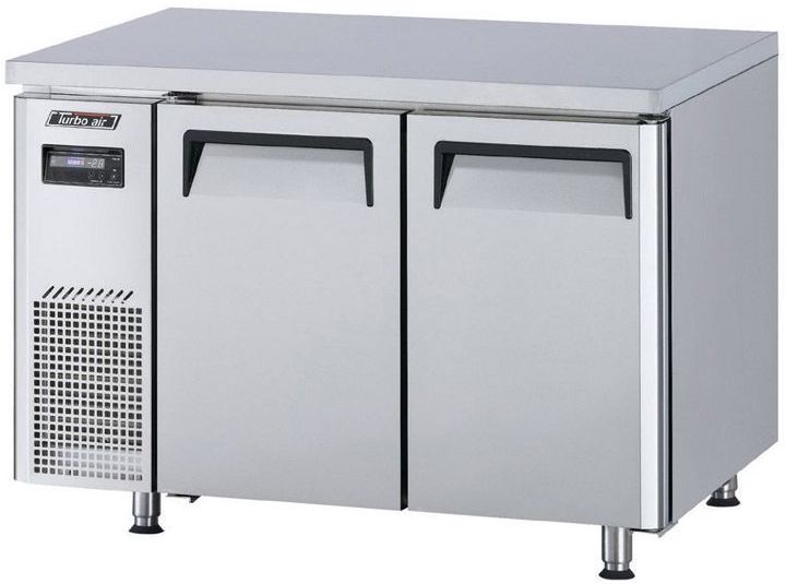 Холодильный стол Turbo air KUR12-2 состоит из рабочей поверхности, на которой можно раскатывать тесто и обрабатывать ингредиенты для приготовления блюд, и камеры, предназначенной для охлаждения и кратковременного хранения скоропортящихся продуктов и напитков на предприятиях пищевой промышленности, общественного питания и торговли. Корпус выполнен из нержавеющей стали с применением пожаробезопасных стенкок толщиной 60 мм и уплотнения из теплоэффективного АБС-пластика (акрилонитрилбутадиенстирола), не пропускающего конденсата, оборотная сторона и низ - из гальванизированной стали, пол - из нержавеющей стали с алюминиевыми вставками по бокам и сзади, регулируемые полки - из толстой стальной проволоки с виниловым покрытием, 4 регулируемые ножки - из нержавеющей стали.