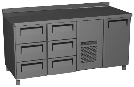 Холодильный стол Сarboma T70 M3-1 0430 (3GN/NT 313) предназначен для раскатки теста, обработки ингредиентов для приготовления блюд, охлаждения и кратковременного хранения скоропортящихся продуктов и напитков на предприятиях общественного питания и торговли. Модель оснащена 3 полками, 6 расположенными по краям ящиками и регулируемыми ножками высотой от 90 до 110 мм. Цельнозаливной корпус выполнен из нержавеющей стали с теплоизоляцией из пенополиуретана, дверцы - из металла.