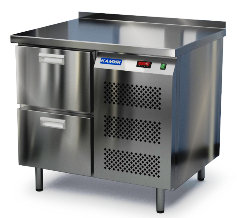 Холодильный стол КАМИК СО-0298 используется на предприятиях общественного питания и торговли для охлаждения и хранения продуктов, напитков и готовых блюд. Конструкция разделена на секции, каждая из которых оборудована сетчатой полкой и парой направляющих. Корпус выполнен из нержавеющей стали AISI 430 толщиной 1 мм, столешница - из нержавеющей стали AISI 304 толщиной 1,5 мм.