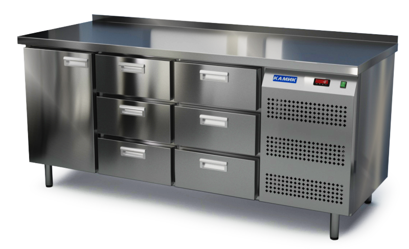 Холодильный стол КАМИК СО-Т-16237 используется на предприятиях общественного питания и торговли для охлаждения и хранения продуктов, напитков и готовых блюд, а также для установки теплового оборудования на него. Конструкция разделена на секции, каждая из которых оборудована сетчатой полкой и парой направляющих. Корпус выполнен из нержавеющей стали.