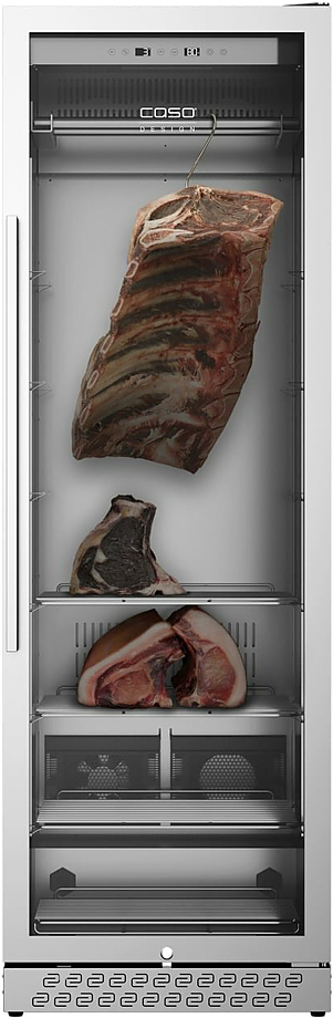 Шкаф для мяса CASO DryAged Master 380 Pro предназначен для охлаждения и вызревания мяса и колбас на предприятиях пищевой промышленности, общественного питания и торговли, а также в частных домах и квартирах. Модель оснащена сенсорной панелью управления, съемным контейнером для воды и замком. Корпус выполнен из нержавеющей стали, дверца - из стекла с ультрафиолетовым фильтром.