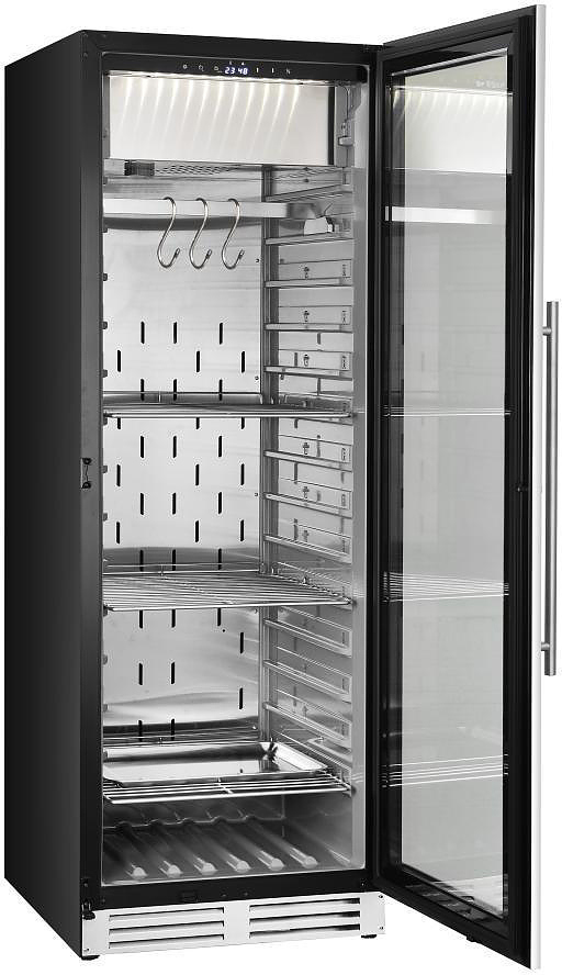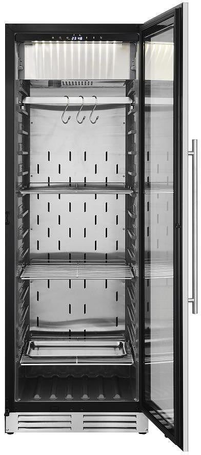 Шкаф для мяса MeatAge VI180 WT предназначен для охлаждения и вызревания мяса, ветчины и салями в частных домах, квартирах, отелях и офисах. Модель оснащена акустической сигнализацией и запираемой дверью. Корпус и комплектующие выполнены из нержавеющей стали AISI 304, дверца - из ударопрочного закаленного стекла.