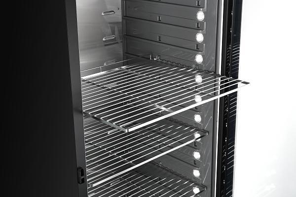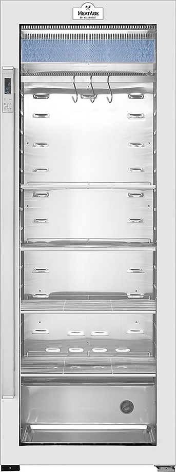 Шкаф для мяса MeatAge VI200 WT используется для охлаждения, хранения и вызревания мяса, ветчины и салями на предприятиях общественного питания, торговли, пищевых производствах и в домашних условиях. Модель оснащена регулировкой температуры и влажности, автоматической разморозкой, системой испарения конденсата, тачпадом со светодиодной подсветкой, оптической и акустической сигнализацией, регулируемыми полками, механическим замком и резервуаром для воды. Материал корпуса - окрашенный металл, материал боковых внутренних стенок - ABS-пластик, материал полок, задней стенки и комплектующих - высококачественная нержавеющая сталь, материал двери - ударопрочное закаленное стекло.