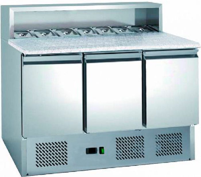Стол для пиццы Hurakan HKN-PZLG3 используется на предприятиях общественного питания и торговли для хранения пиццы, салатов, сэндвичей и других блюд и ингредиентов к ним в охлажденном состоянии.