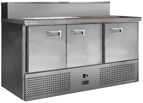 Стол для пиццы Finist СХСнпцг-700-3 предназначается для охлаждения и кратковременного хранения продуктов перед приготовлением, а также обработки ингредиентов на предприятиях общественного питания, торговли и пищевых производствах. Стол установлен на 4 регулируемые ножки. Модель оснащена столешницей с крышкой, евровилкой, цифровым дисплеем, автоматической оттайкой испарителя и кнопочной панелью управления. Материал корпуса, распашных дверей - высококачественная нержавеющая сталь, материал столешницы - гранит, материал задней стенки и нижней панели - оцинкованная сталь.