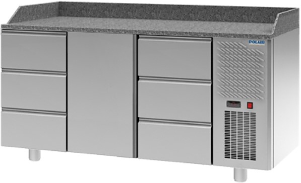 Холодильный стол для пиццы POLAIR TM3pizza303-G серии Grande используется на предприятиях общественного питания, торговли и пищевых производствах для раскатки теста, хранения и обработки ингредиентов перед приготовлением пиццы. Данная модель обеспечивает механическую прочность, термоизоляцию и герметичность. Материал внешнего и внутреннего корпуса, дверцы и ящиков - высококачественная нержавеющая сталь, материал столешницы и борта - натуральный гранит, материал теплоизоляции - пенополиуретан.