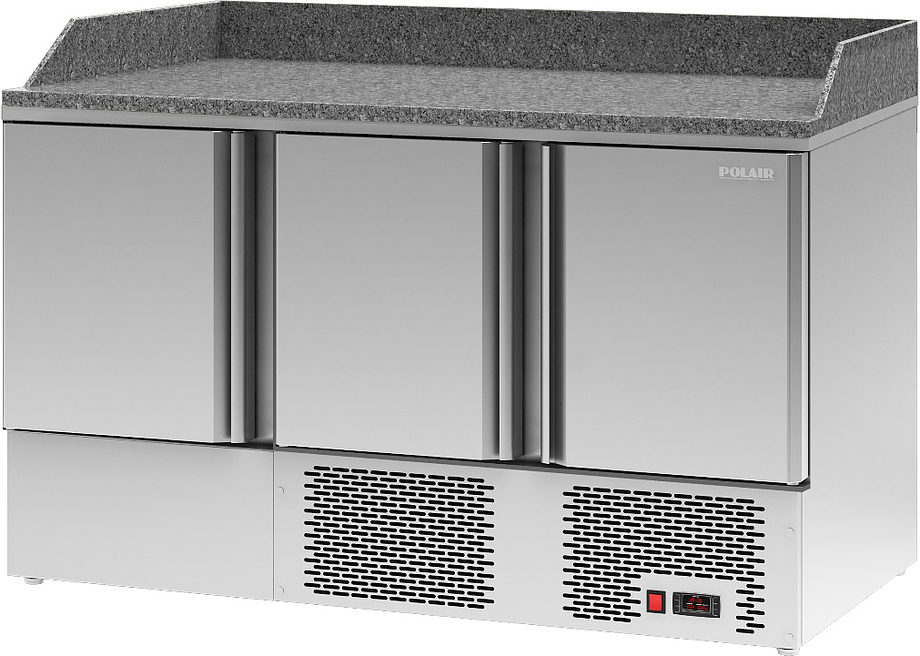 Холодильный стол POLAIR TMi3pizza-G используется на предприятиях общественного питания, торговли и пищевых производствах для хранения продуктов и обработки ингредиентов. Модель оснащена автоматической оттайкой, динамическим охлаждением, терморегулятором, уплотнителем с магнитными вставками и регулируемыми ножками. Материал корпуса и дверей - высококачественная нержавеющая сталь, материал столешницы и борта - гранит.