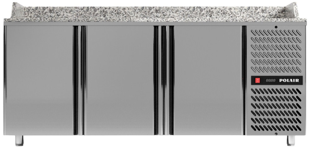 Холодильный стол POLAIR TM3ENpizza-G используется на предприятиях общественного питания, торговли и пищевых производствах для хранения продуктов и обработки ингредиентов при приготовлении пиццы. Модель оснащена автоматической оттайкой, динамическим охлаждением, электронным терморегулятором, уплотнителем с магнитными вставками и регулируемыми ножками. Материал корпуса - высококачественная нержавеющая сталь, материал двери - термоизоляция ППУ.