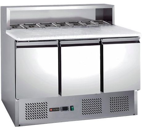 Холодильный стол Tatra TPZGNL3 V ST используется на предприятиях общественного питания, торговли и пищевых производствах для приготовления пиццы и хранения заготовок. Модель оснащена цифровым термостатом, металлическим козырьком, эластичным уплотнителем и регулируемыми ножками. Материал корпуса - высококачественная нержавеющая сталь.