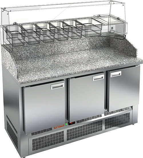 Стол для пиццы HICOLD PZE3-111/SN используется на предприятиях общественного питания, торговли и пищевых производствах для раскатки теста и обработки ингредиентов, используемых для приготовления пиццы, салатов и других блюд, а также для охлаждения и кратковременного хранения скоропортящихся продуктов и напитков. Модель совмещает в себе рабочую поверхность и охлаждаемый объем, что значительно упрощает работу повара, так как все необходимые компоненты всегда находятся под рукой. Материал корпуса - нержавеющая сталь, материал столешницы - гранит.