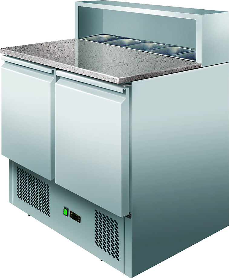 Холодильный стол Koreco PS900 используется на предприятиях общественного питания и торговли для раскатки теста и приготовления пиццы, а так же для охлаждения и кратковременного хранения скоропортящихся продуктов и напитков. Корпус выполнен из нержавеющей стали AISI 304.