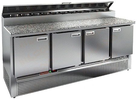 Охлаждаемый стол для пиццы HICOLD PZE2-1111/GN (1/6H) выполнен из нержавеющей стали . Верх стола накрыт каменной столешницей.