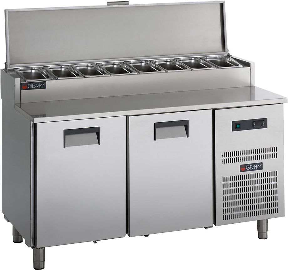 Холодильный стол Gemm SFF/815G серии NEW SMART предназначен для раскатки теста, обработки ингредиентов для приготовления пиццы, охлаждения и кратковременного хранения скоропортящихся продуктов и напитков на предприятиях общественного питания и торговли. Модель оснащена охлаждаемой витриной для контейнеров с крышкой из нержавеющей стали и цифровым термостатом.