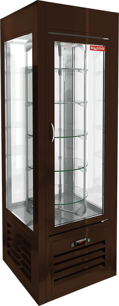 Кондитерская витрина HICOLD VRC 350 R SH Brown используется на предприятиях общественного питания и торговли для демонстрации, охлаждения и кратковременного хранения кондитерских изделий и десертов. Модель оснащена 5 вращающимися полками, светодиодной подсветкой и колесами со стопорами. Корпус выполнен из окрашенной стали.