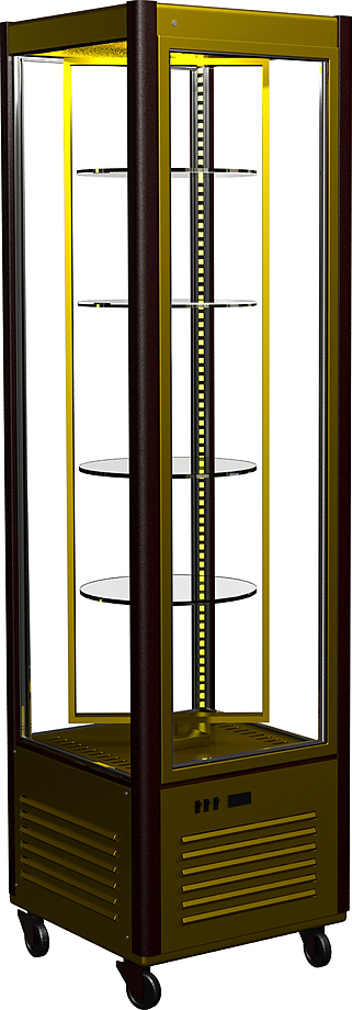 Кондитерская шкаф-витрина KAYMAN К-ШВ-400В класса люкс предназначена для охлаждения, кратковременного хранения и демонстрации выпечки, тортов, пирожных и пиццы на предприятиях общественного питания и торговли. Модель оснащена 4 полками.