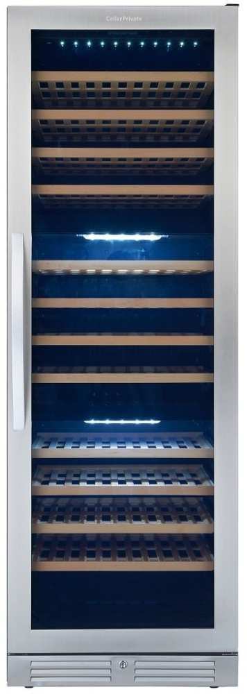 Винный шкаф Cellar Private CP154-3T обеспечивает идеальные условия для сохранения всех вкусовых качеств разливного вина на предприятиях общественного питания, торговли, а также в частных домах и квартирах. Модель оснащена сенсорным управлением, регулировкой температуры, LED-подсветкой холодного белого цвета, металлической ручкой, замком и регулируемыми ножками. Материал корпуса и ручки - окрашенный металл, материал двери - металлическая рама и двойного тонированного стеклопакета с УФ-фильтром, материал полок - дерево.