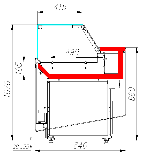 • Глубина зоны выкладки: 490 мм