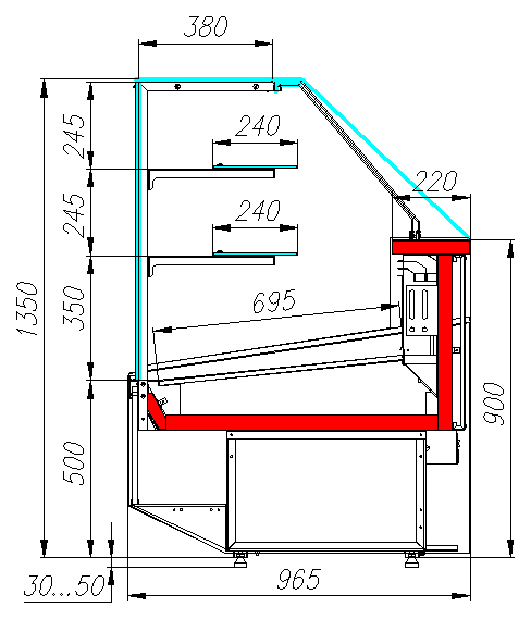 Кондитерская витрина Carboma KC95 VM 1,2-1 используется на предприятиях общественного питания и торговли для демонстрации, охлаждения и кратковременного хранения тортов, пирожных и других кондитерских изделий. Модель оснащена гнутым передним стеклом, 2 неохлаждаемыми стеклянными полками и регулируемыми ножками высотой от 30 до 50 м. Корпус выполнен из стали с ППУ-теплоизоляцией, зона выкладки и столешница - из нержавеющей стали, раздвижные задние створки - из оргстекла, передняя панель - из МДФ белого цвета или декорированного под дерево.