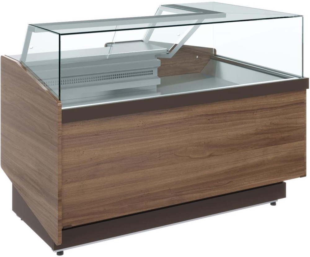 Угловая кондитерская витрина Carboma KC82 SM-5 02 используется на предприятиях общественного питания и торговли для демонстрации, охлаждения и кратковременного хранения тортов, пирожных и других кондитерских изделий. Модель оснащена прямым передним стеклом и регулируемыми ножками высотой от 30 до 50 м. Корпус выполнен из стали с ППУ-теплоизоляцией, зона выкладки и столешница - из нержавеющей стали, раздвижные задние створки - из оргстекла, передняя панель - из МДФ белого цвета или декорированного под дерево.