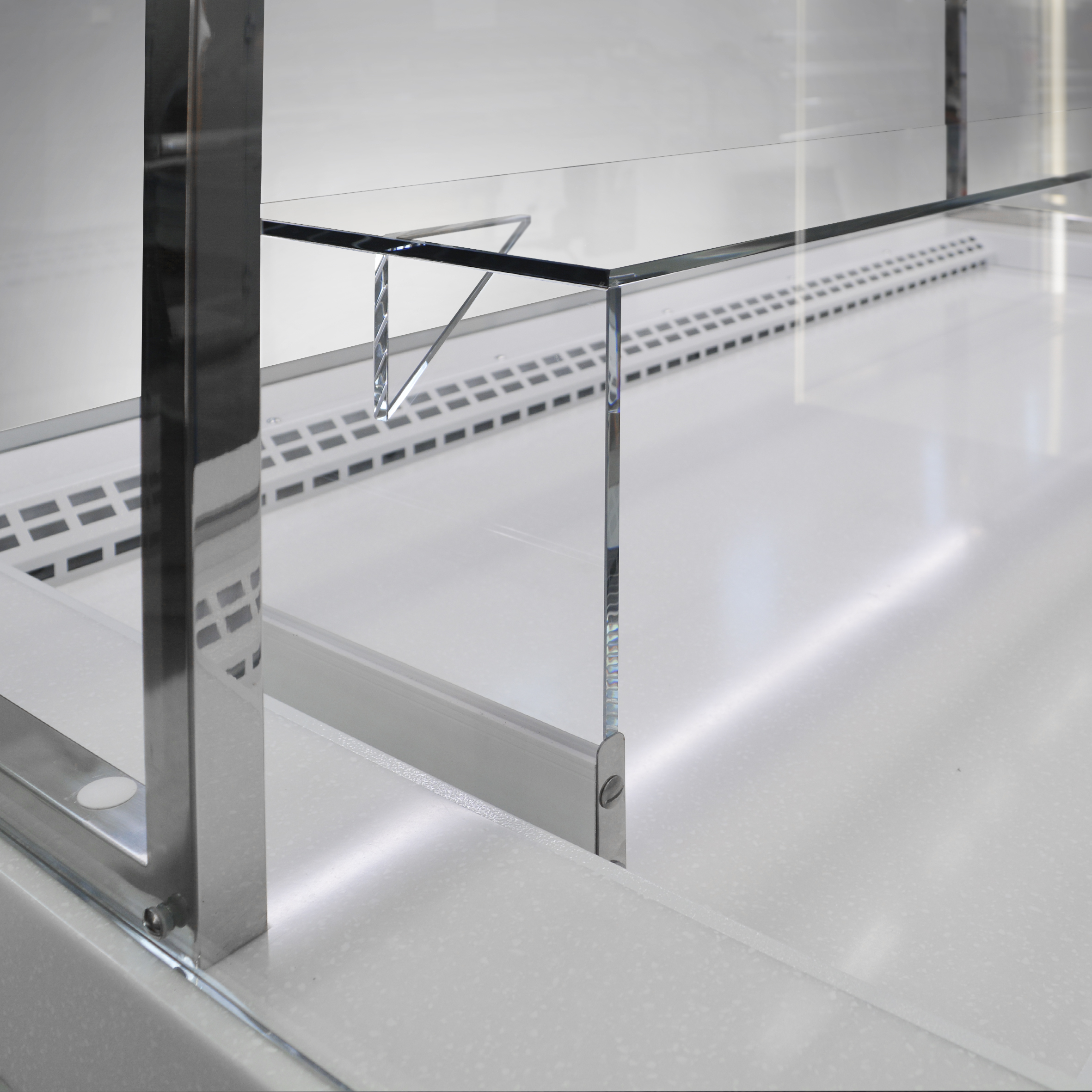 Витрина кондитерская Finist Maria Msv-20-9 используется для демонстрационной выкладки, охлаждения и хранения кондитерских и хлебобулочных изделий на предприятиях общественного питания и торговли. Модель оснащена микропроцессорным блоком, автоматической оттайкой, охлаждаемой камерой, выдвижной полкой, подсветкой и дверьми-купе. Материал фронтальных и боковых панелей облицовки - МДФ панели, материал купола и полок - просветленное стекло, материал зоны выкладки и столешницы - искусственный камень.