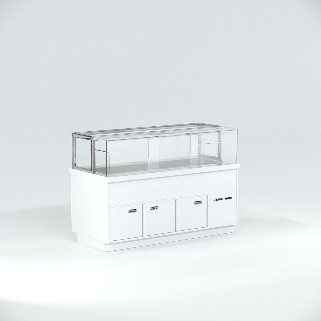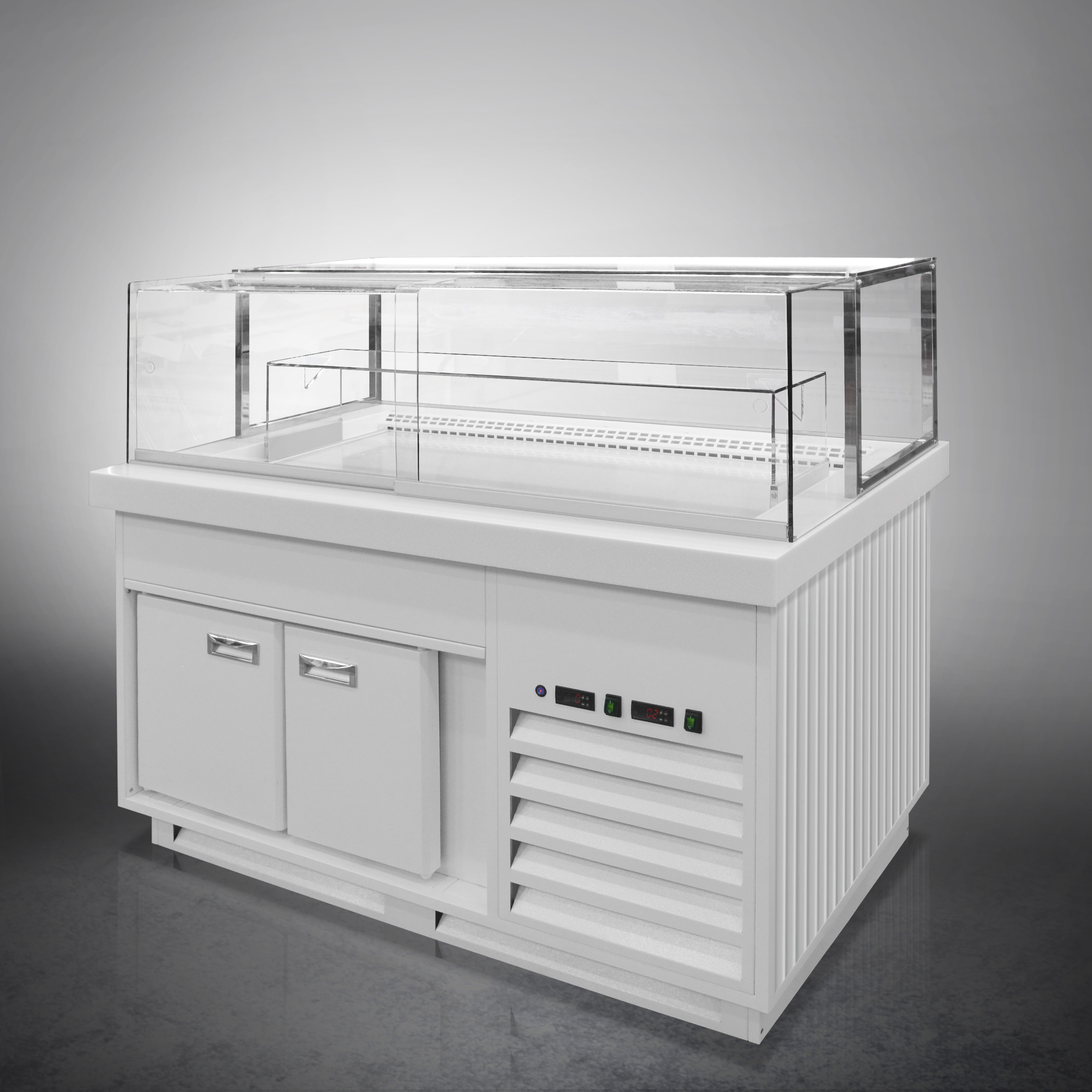 Витрина кондитерская Finist Maria Msv-21-9 используется для демонстрационной выкладки, охлаждения и хранения кондитерских и хлебобулочных изделий на предприятиях общественного питания и торговли. Модель оснащена микропроцессорным блоком, автоматической оттайкой, охлаждаемой камерой, выдвижной полкой, подсветкой и дверьми-купе. Материал фронтальных и боковых панелей облицовки - МДФ панели, материал купола и полок - просветленное стекло, материал зоны выкладки и столешницы - искусственный камень.
