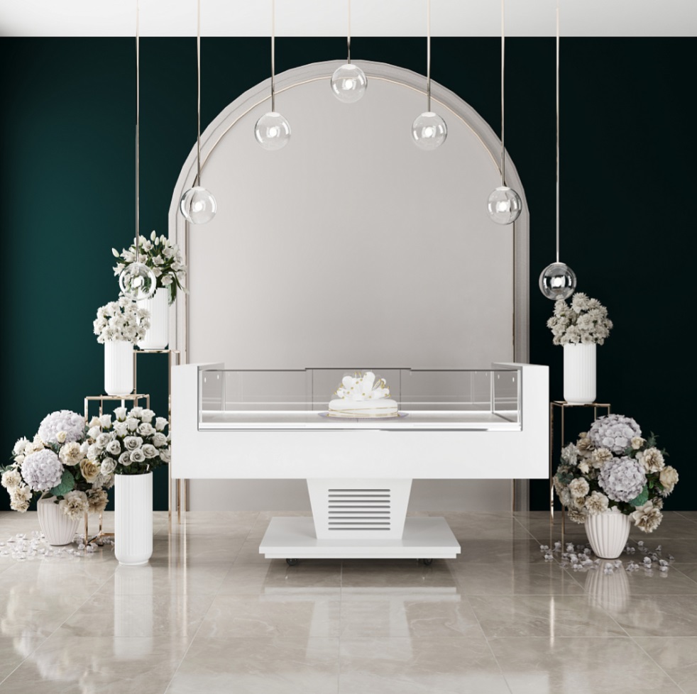 Витрина кондитерская Finist ROYAL R-20 используется для демонстрационной выкладки, охлаждения и хранения кондитерских и хлебобулочных изделий на предприятиях общественного питания и торговли. Модель оснащена микропроцессорным блоком, охлаждаемой столешницей, регулируемой подсветкой светодиодной , дверьми-купе и колесами с фиксаторами.. Материал фронтальных и боковых панелей облицовки - МДФ панели, материал столешницы - кварцевый агломерат.