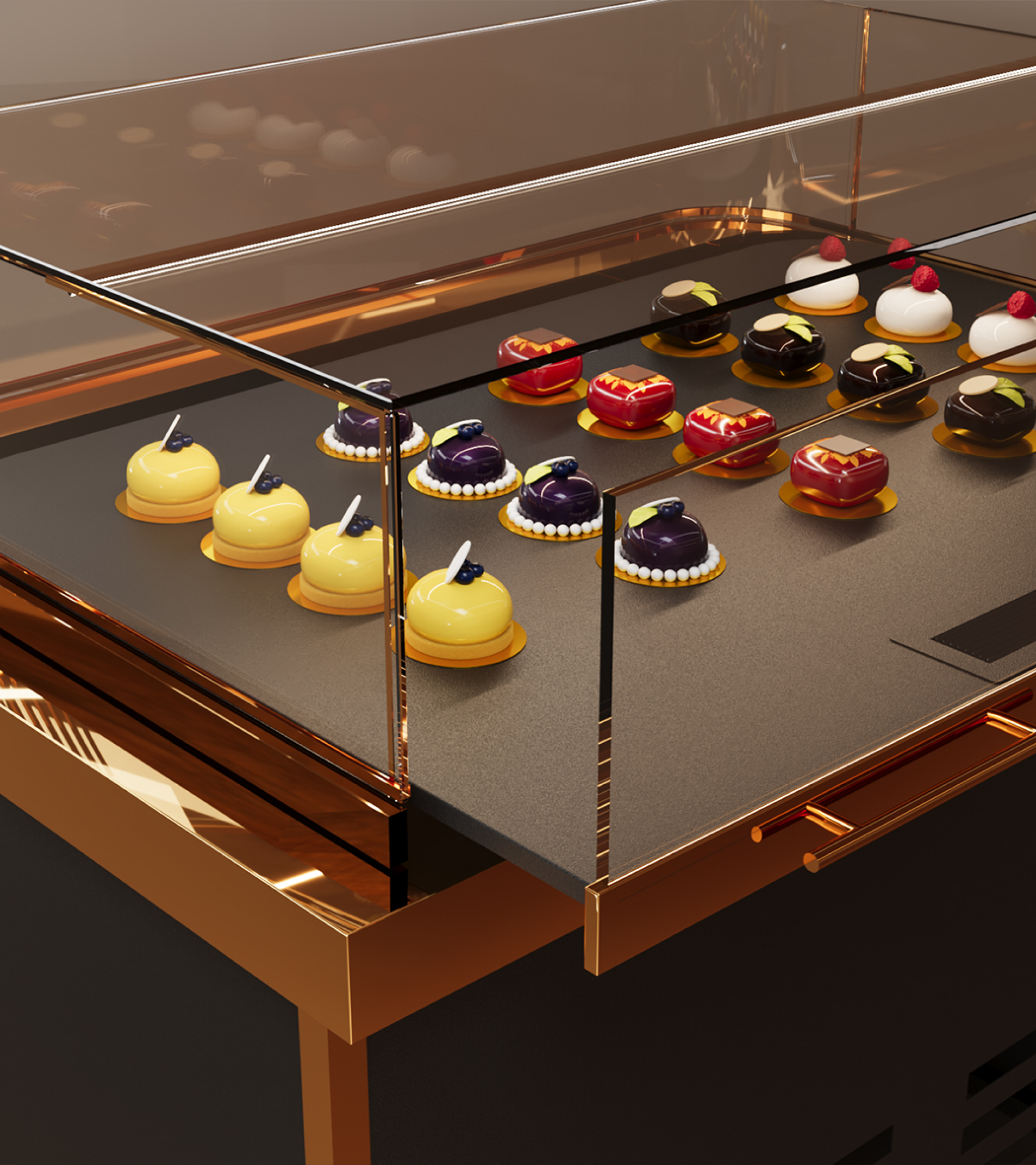 Холодильная витрина Finist GLASSIER SLIDE LUX GSL-8/65/3 используется для демонстрационной выкладки, охлаждения и хранения кондитерских и хлебобулочных изделий на предприятиях общественного питания и торговли. Модель оснащена микропроцессорным блоком, автоматической оттайкой, цоколем, светодиодной подсветкой и выдвижным поддоном. Материал фронтальных и боковых панелей облицовки - МДФ панели, материал купола - просветленное стекло.